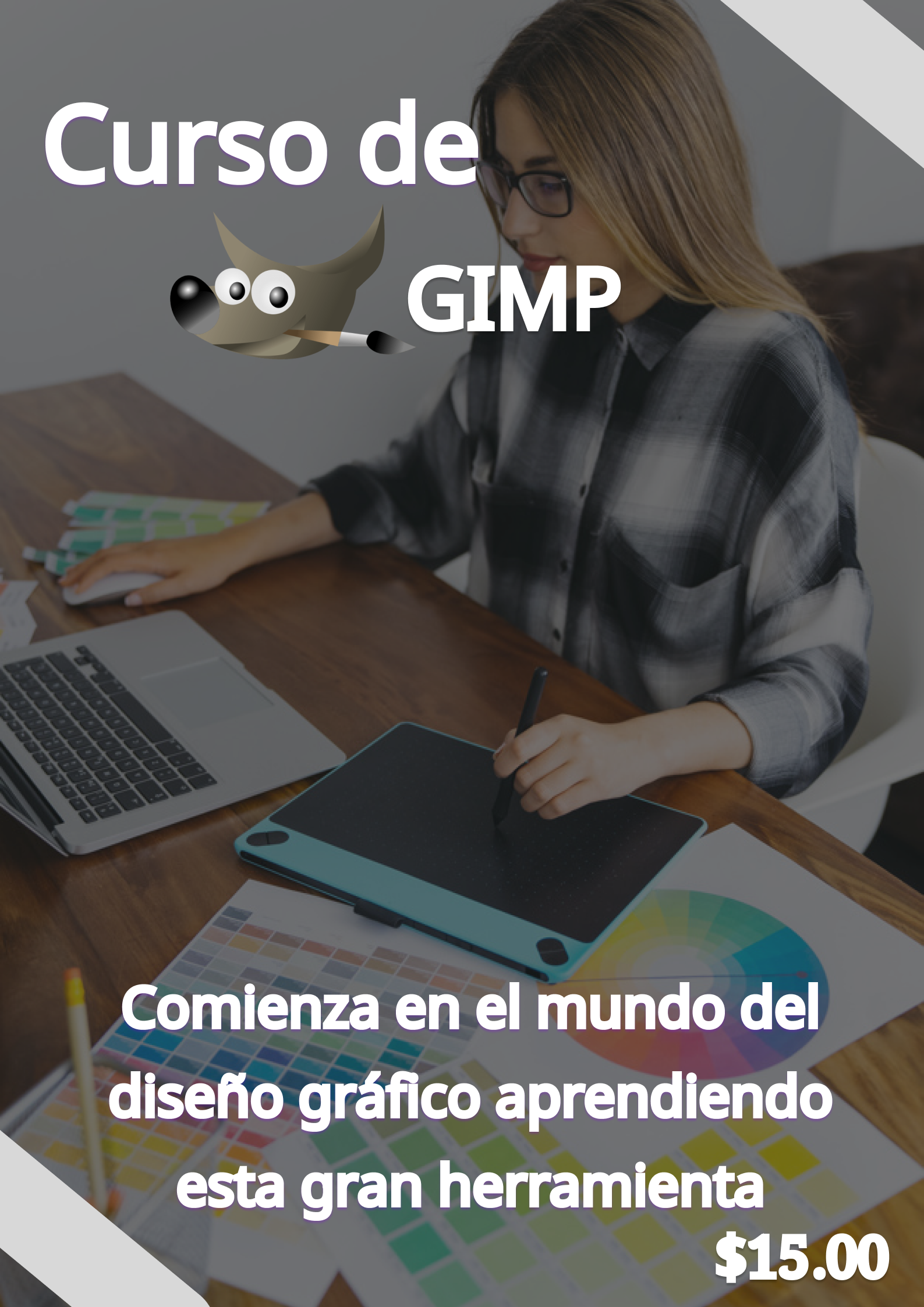 Aprende GIMP en tan solo 55 lecciones con la profesora Lucia Santos: portadas, filtros, banners, etc.